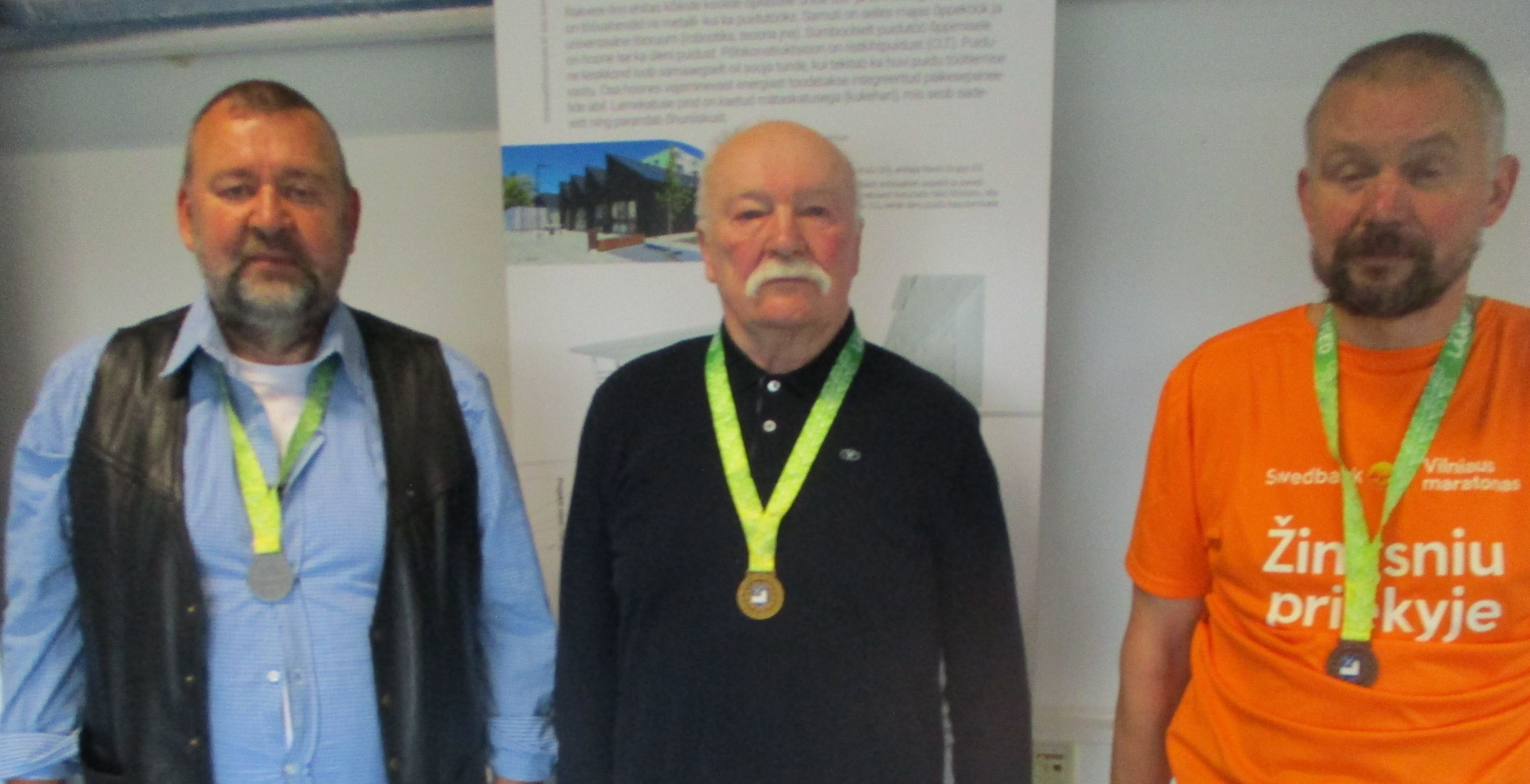 Pildil on medalistid: vasakult Eino Vaher, Kalev Pagar ja Tanel Kadai.