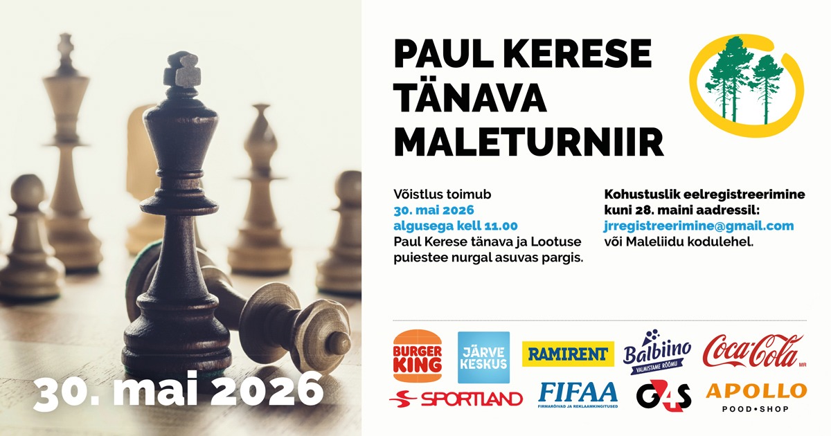 Võistlused toimuvad 25. aprillil Paul Kerese Malemajas algusega kell 11.00.